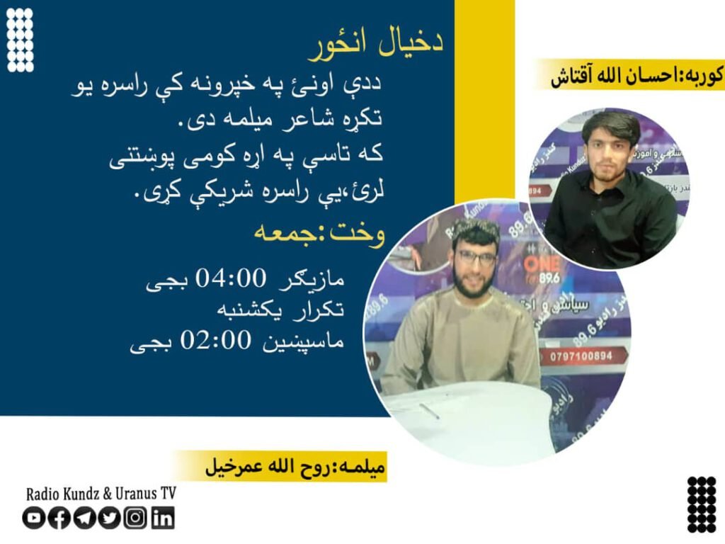 در برنامه این هفته خیال انځوربا شاعر توانا روح الله عمرخیل گفتگو کرده ایم