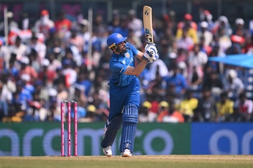 CHENNAI, INDIA - FEBRUARY 08: Ibrahim Zadran of Afghanistan bats during the ICC Men's T20 World Cup India & Sri Lanka 2026 match between New Zealand and Afghanistan at MA Chidambaram Stadium on February 08, 2026 in Chennai, India. (Photo by Joe Allison-ICC/ICC via Getty Images)
