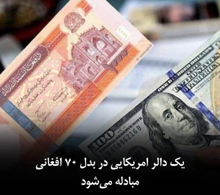 Da Afghanistan Bank has announced in a newsletter that one American dollar is exchanged for 70 Afghanis.