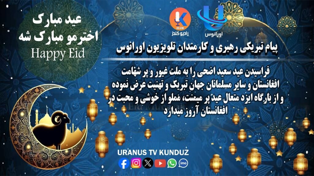 The leadership board of Uranus Television and Kunduz Radio warmly congratulates all dear compatriots on the occasion of Eid al-Adha.