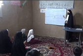 رقیه احمدي چې پخپله هم ګونګۍ ده معلولو نجونو او هلکانو ته د قرآن کریم، فارسي ژبې او ریاضي درس ورکوي.