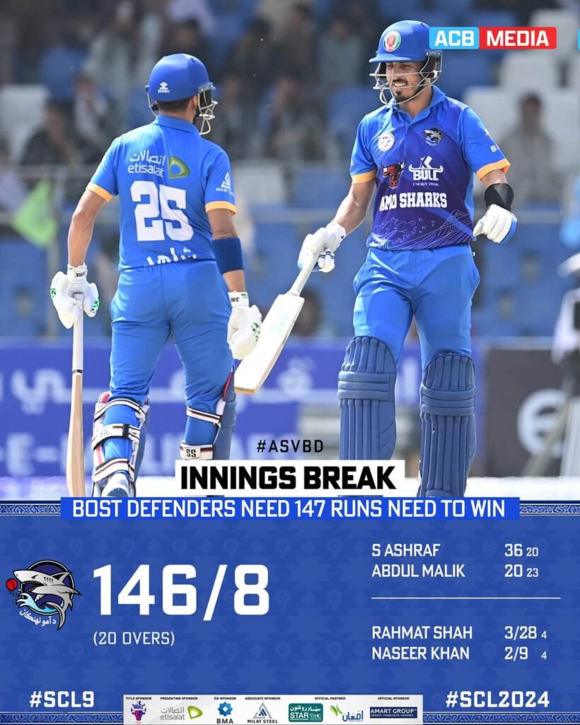 د افغانستان- اکسبول انرژي شپږیزه کرېکټ لیګ نهم پړاو سیالیو په یوولسمه لوبه کې امو نهنګانو د یوې په زړه پورې سیالۍ وروسته د عظمت الله عمرزي د غوره توپاچونې پر مټ بست ساتونکو لوبډلې ته د ۱۱ منډو په توپیر ماته ورکړه او روانو سیالیو کې یې دویمه بریا خپله کړه.