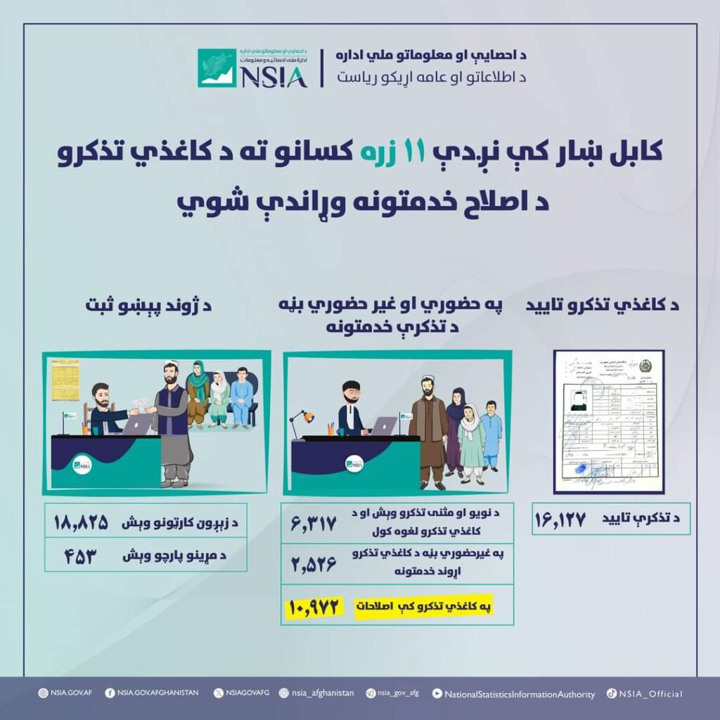 کابل ښار کې نږدې ۱۱زره کسانو ته د کاغذي تذکرو د اصلاح خدمتونه وړاندې شوي