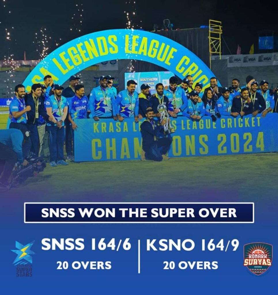 د لیجنډز لیګ سیالیو په ستره پایلوبه کې سوتړن سوپر سټارز او کونارک سوریاز اوډېشا لوبډلې مخامخ شوې، چې له یوې سختې او جذابې سیالۍ وروسته سوپر سټارز پکې سیالې لوبډلې ته په سوپر اور کې ماته ورکړه.