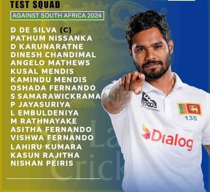 د سریلانکا کرېکټ بورډ غوراوي کمېټې د سویلي افریقا پر وړاندې راتلونکو دوه ټېسټ سیالیو ته د دننجایا ډي سلوا تر لوبډلمشرۍ لاندې ۱۷ کسیزه لوبډله په ډاګه کړه.