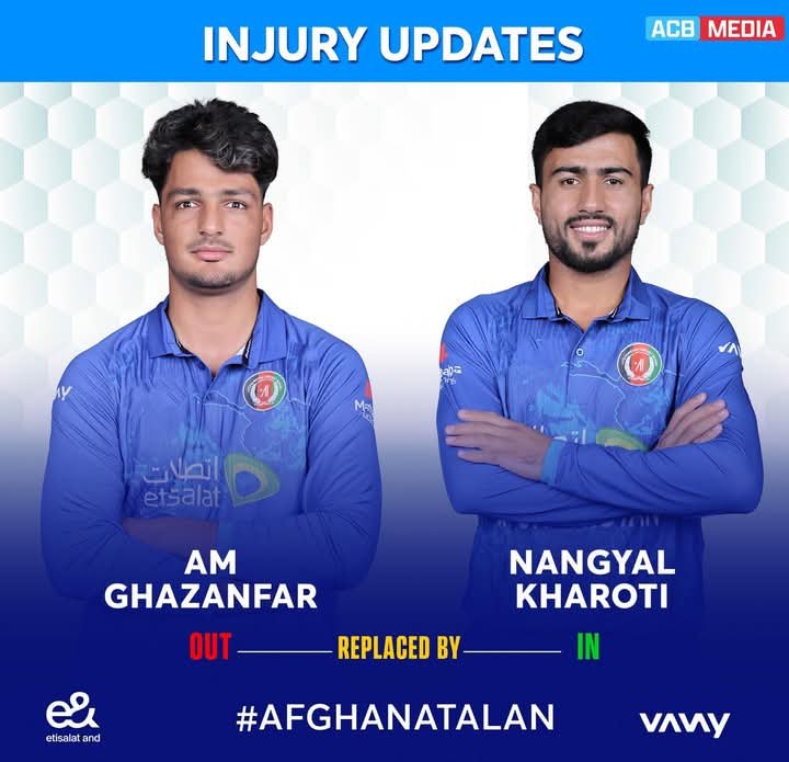 باید وویل شي چې د نوموړي پر ځای ننګیال خروټی، چې له دې وړاندې د احتیاطي لوبغاړو په ډله کې و، د چمپینز ټرافي سیالیو لپاره اصلي نوملړ ته اضافه شوی دی. د یادونې وړ ده چې د ملي لوبډلې بل تکړه ورو توپ اچونکی مجیب الرحمن هم تر اوسه په یو ورځنیو سیالیو کې د ګډون جوګه نه دی او د اړوند ډاکټر له سپارښتنې سره سم به د یوې مودې لپاره له یو ورځنیو سیالیو لېرې وي.