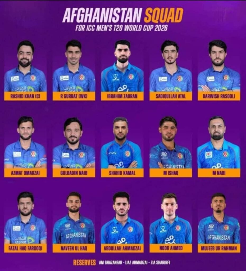 د افغانستان کرکټبورډ غوراوي کمېټې د ۲۰۲۶ کال نړۍوال جام او ویسټنډیز پر وړاندې درې شل اوریزو سیالیو ته خپله ۱۵ کسیزه لوبډله اعلان کړه. په دغه لوبډله کې الله محمد غضنفر، ایجاز احمدزي او ضیاءالرحمان شریفي ته د احتیاطي لوبغاړو په توګه ځای ورکړل شوی دی. د ویسټنډیز پر وړاندې د درې شل اوریزو سیالیو لوبلړۍ د روانې مرغومي میاشتې پر ۲۹مه نېټه په اماراتو کې پیلیږي او نړۍوال جام سیالۍ د راتلونکې سلواغې میاشتې پر ۱۸مه نېټه په سریلانکا کې پیلیږي.
